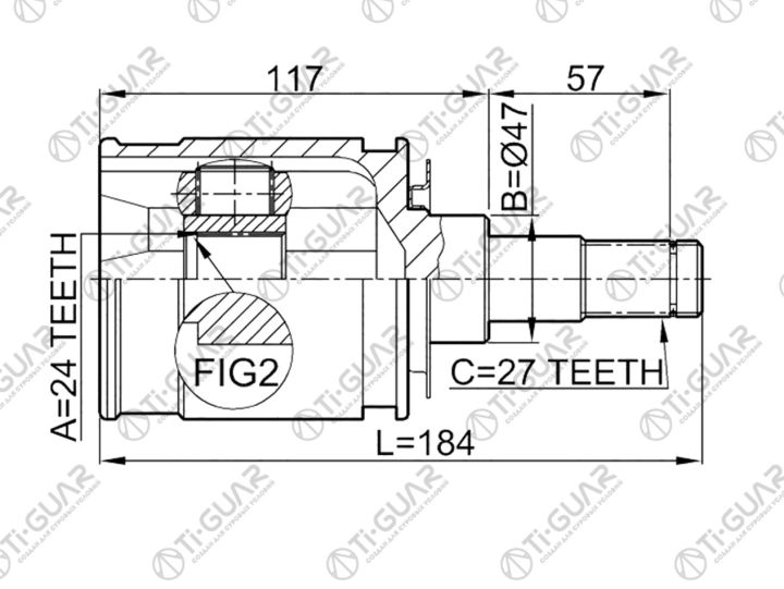 ШРУС внутренний /TI-GUAR для Toyota Land Cruiser Prado 1996-2002 Hilux Surf ##N185W /24*47*27; TG-IN9508; (CI-3720 TO-631 0111KDJ95) 4340335030