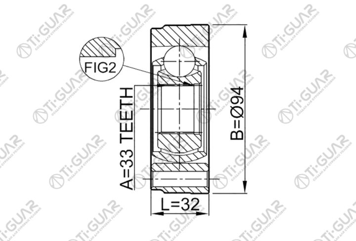 ШРУС внутренний /передний правый /левый /TI-GUAR для Skoda Octavia 2004-2012 Volkswagen Golf V 2003-2008; 33*94; TG-IN9802; (2311GV CI8015) 1K0498103B